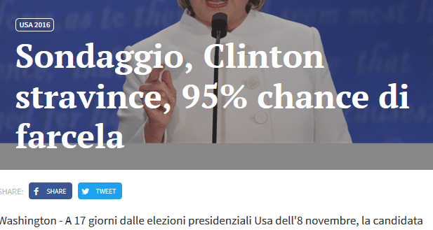 1. sia la campagna per la Brexit, che l’elezione del presidente degli Stati Uniti vedevano avanti nei sondaggi risultati poi smentiti dai fatti.